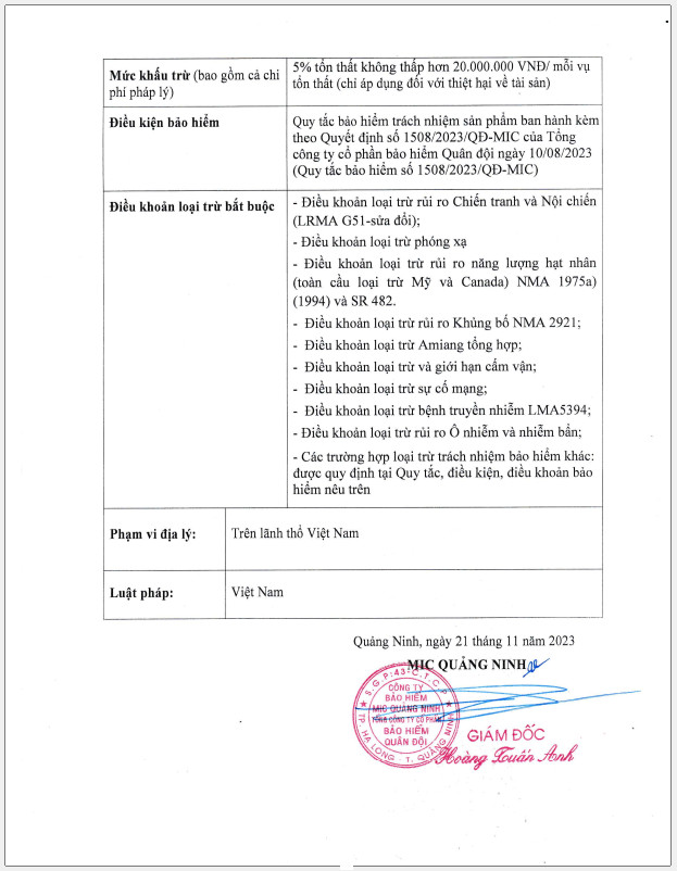 - Người được bảo hiểm: Các nhà sản xuất, nhà phân phối, người bán lẻ trong các kênh phân phối.