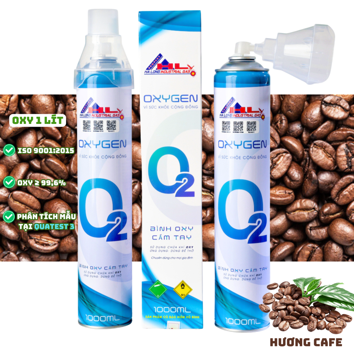 Oxy tinh khiết kết hợp Hương Cafe nhẹ nhàng – hỗ trợ bạn cảm thấy dễ thở hơn trong những lúc mệt nhẹ, ngột ngạt hoặc sau khi vận động do thiếu Oxy.