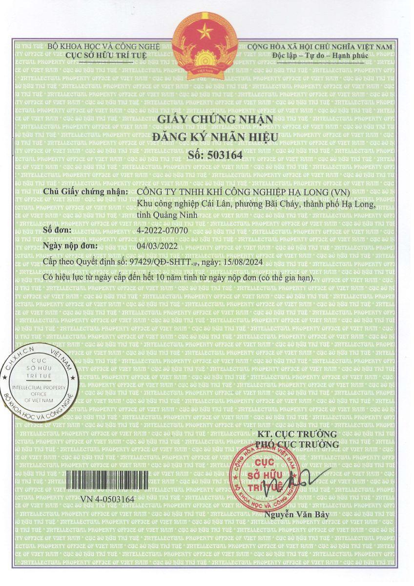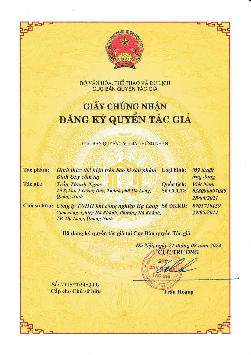 Sản phẩm bình Oxy cầm tay 1 lít đã được đăng ký quyền tác giả và quyền sở hữu trí tuệ.